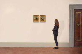 coppia di dipinti, olio su tavola, cm 24,5x19