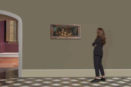 COMPOSIZIONE FLOREALE SU SFONDO DI PAESAGGIO