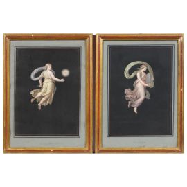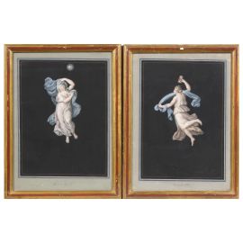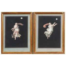 La splendida serie qui presentata è composta da dieci gouaches rappresentanti le Allegorie delle ore del giorno (dalla prima alla sesta) e della notte (la prima, la seconda, la quinta e la sesta), tratte probabilmente da alcuni affreschi realizzati da Raffaello Sanzio a Roma e oggi non più esistenti. Ogni allegoria è precisata da un’iscrizione al di sotto della raffigurazione.