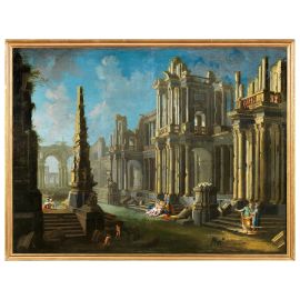 La paternità del Cappelli per il Capriccio qui preso in esame si desume con chiara evidenza dal riscontro della complessa inventiva, più verosimile che realistica nella sua impostazione scenografica, unitamente all’impronta stilistica e pittorica con cui sono resi i vari parametri, trovando poi uno strettissimo raffronto nel ‘Capriccio’ firmato per esteso, già presso la galleria antiquaria Parenza di Roma e forse proveniente dallo Schoss Grenburg in Austria (2015, op. cit., I, cat. n. 9, pp. 136-137). Ma nonostante tali positive peculiarità, forse a causa dell’eccessivo eclettismo in inventive fantasiose e dell’essere ‘negli scuri soverchio amico della terra negra’, come scrive il De Dominici, il Cappelli non solo ebbe un gran successo in vita, ma fu quasi dimenticato dalla critica contemporanea. Invero il Cappelli era già stato debitamente presentato in un antesignano articolo da Hermann Voss (Panninesque paintings before Pannini, in “Apollo”, 1926, pp. 332-336), a cui solo a distanza di 70 anni era seguita una sua giusta riconsiderazione (Catalogo della mostra Capolavori in festa. Effimero Barocco a Largo di Palazzo 1683-1759, Electa, Napoli 1997, n. 131, a cura di I. Rochx, R. Lattuada), in cui fu esposto uno dei suoi più rilevanti capricci, per lungo tempo in deposito al Museo Boymans di Rotterdam e poi venduto alla Sotheby’s di Londra il 15 aprile 2011 (2015, op. cit., fig. 1, p. 132). Rispetto al quale quadro nel presente esempio compare un pinnacolo o piccola piramide che rimanda chiaramente all’ambito bolognese, avvalorando l’ipotesi che il Cappelli abbia soggiornato a Bologna ai fini di un suo perfezionamento, con un’utile apprensione delle determinazioni innovazioni dei Bibbiena, estese da lui stesso dal campo teatrale a quello pittorico".