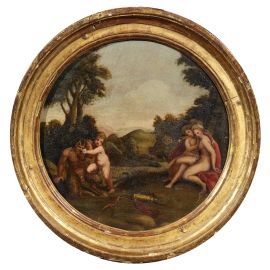 SCENA MITOLOGICA CON CUPIDO, SATIRO E NINFE