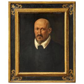 In questo inedito ritratto, Patrizi è rappresentato nei caratteristici abiti di Accademico della Crusca. È quindi possibile che l’opera sia stata realizzata intorno al 1587, anno in cui ottenne tale prestigiosa nomina.