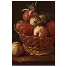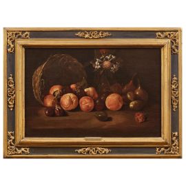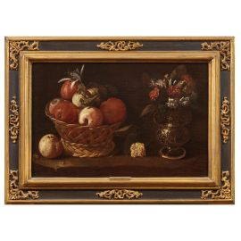 Austere nella presentazione della frutta estiva e autunnale su piani disadorni che si addentrano nell’ombra di uno spazio oscuro, le bellissime nature morte qui presentate declinano con raffinata semplicità gli stilemi di un genere legato con ogni evidenza al primo tempo caravaggesco. Nel presentarle per la prima volta Alberto Cottino indicava come modello ideale per le ceste sapientemente definite dalla luce l’analogo dettaglio nella Cena in Emmaus di casa Mattei, del 1601. È appunto da sottolineare la persistente semplicità con cui quel motivo viene qui presentato, in palese contrasto con gli esiti spettacolari precocemente offerti, ad esempio, dalle composizioni del Maestro Acquavella – per citare altre derivazioni dalla “fiscella” caravaggesca - sontuose anche sotto il profilo cromatico a differenza delle nostre, tutte giocate sul contrasto di pochi toni fondamentali in risalto sul fondo scuro. Colpisce, nei dipinti qui esaminati, l’intenso naturalismo con cui l’anonimo artista indugia a descrivere le imperfezioni dei frutti – mele bacate e foglie avvizzite, quasi a richiamare il tema della Vanitas – restituendo tuttavia con pari attenzione i raffinati contrasti del vaso bimetallico in uno di essi. Il rigore compositivo della presentazione sembra richiamare in modo specifico protagonisti del naturalismo spagnolo, quale il primo Van der Hamen nel terzo decennio del secolo o, per restare entro i nostri confini, la sua versione lombarda nel giovane Baschenis intorno alla metà del secolo, nella Lombardia di cultura spagnola. In attesa di trovare un nome alle nostre ceste di frutta vale richiamare a confronto, non tanto sotto il profilo puramente tematico quanto per le soluzioni luministiche adottate, la cesta di dolciumi offerta da un ragazzo dipinta dal grande artista bergamasco, presente in altre sue analoghe prove tra quinto e sesto decennio, nate da un medesimo intento di austero naturalismo.