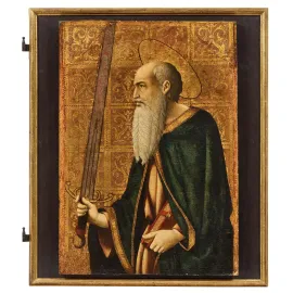 Le due tavole presentano i santi Paolo e Giacomo stagliati su un fondo oro lavorato con piccoli punzoni e a risparmio realizzando degli eleganti fiori. Si tratta di due opere che facevano parte di un grande altare, forse come scomparti superiori ai lati di una rappresentazione centrale. Entrambe sono tradizionalmente attribuite a Paolo da San Leocadio, pittore che ebbe una prima formazione in terra natia e che poi si trasferì in Spagna al seguito del cardinale Rodrigo Borgia, il futuro papa Alessandro VI.