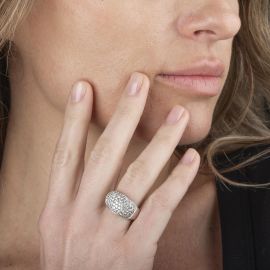in oro bianco 18kt, impreziosito da pavé di diamanti taglio brillante per ct 0.80 circa, punzoni 750 e del fabbricante, mis. 16/56, gr. 9
