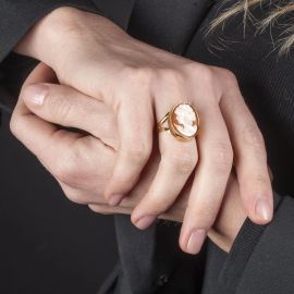 in oro giallo 18kt, recante un cammeo su conchiglia, punzone 750, mis. 17/57, gr. 7