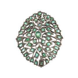 GRANDE ANELLO A LOSANGA E SPILLA CON SMERALDI