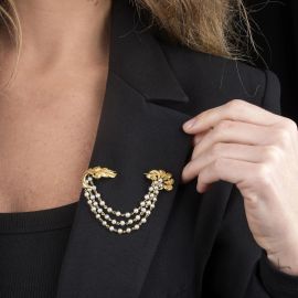 LEAF-SHAPED BROOCH IN 18KT YELLOW GOLD WITH PEARLS