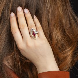 RUBY AND DIAMOND NAVETTE RING IN 18KT TWO TONE GOLD