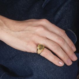 in oro giallo 18kt, impreziosito da un quarzo citrino con inciso uno stemma, punzone 750, mis. 11/51, gr. 12