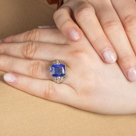 ANELLO CON ZAFFIRO SINTETICO E DIAMANTI