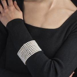 BRACCIALE AD AMPIA FASCIA CON PERLE E DIAMANTI