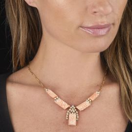 ROSE CORAL AND DIAMOND NECKLACE IN 18KT YELLOW GOLD