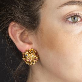 PAIO DI ORECCHINI FLOREALI CON PIETRE DI COLORE