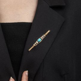 TURQUOISE PASTE AND DIAMOND BARRETTE BROOCH IN 18KT YELLOW GOLD