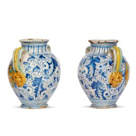 A PAIR OF SPOUTED JARS (ORCIOLI), MONTELUPO, CIRCA 1640