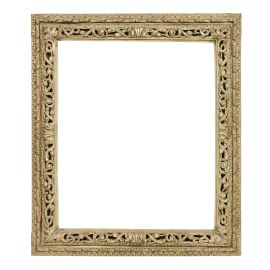 in legno intagliato e dipinto, con intagli a giorno a motivo vegetale che scendono a muro tramite vari profili a mezzefoglie, ingombro; intaglio cm 91,4x79,2 e cm 92,5x79,4, luce cm 74,4x58,6 e cm 72x59