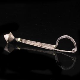 Grande spillone caratterizzato da arco corto e corpo allungato, terminante con un campanello a doppio cono.