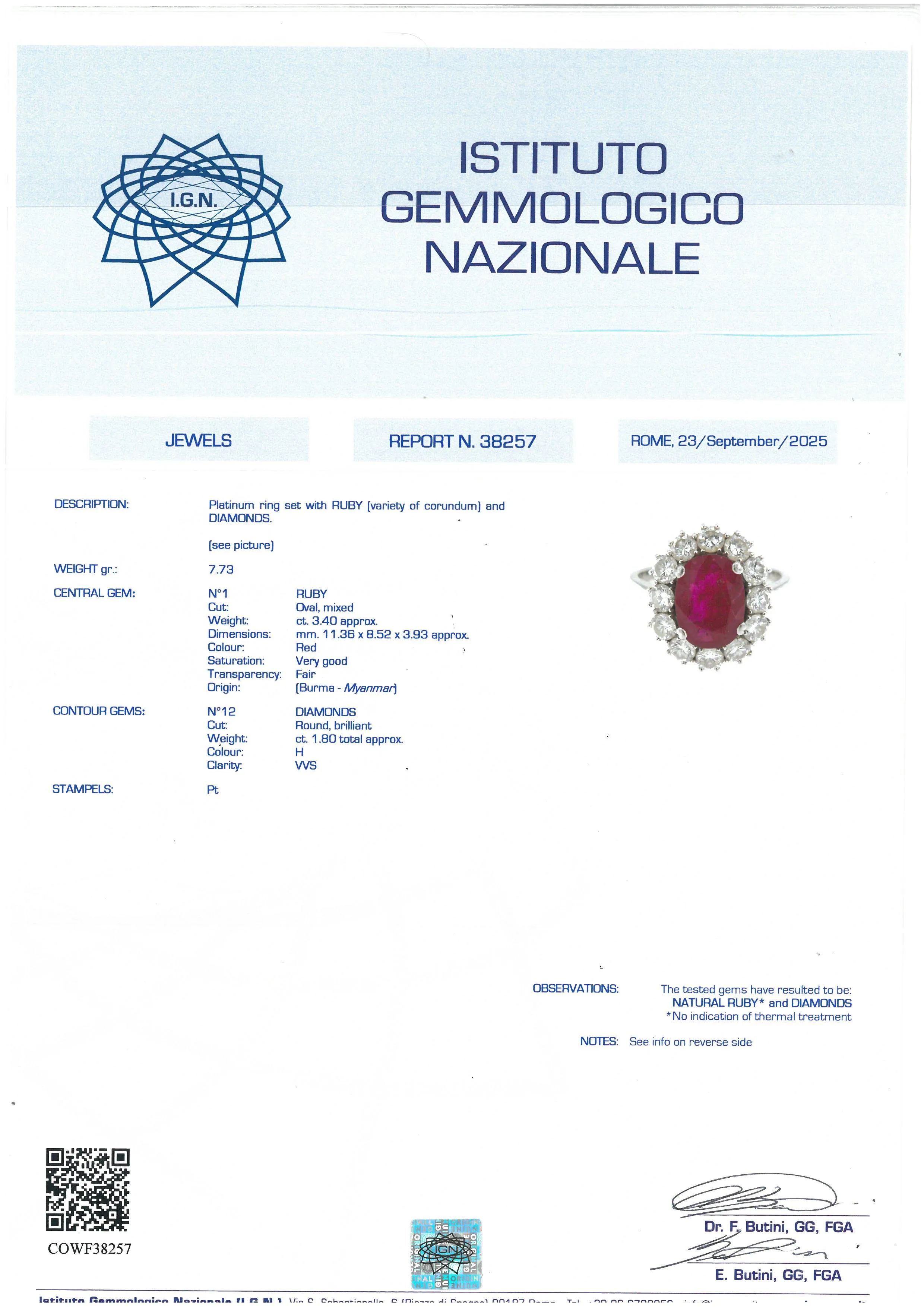 ANELLO A MARGHERITA CON RUBINO BIRMANO E DIAMANTI