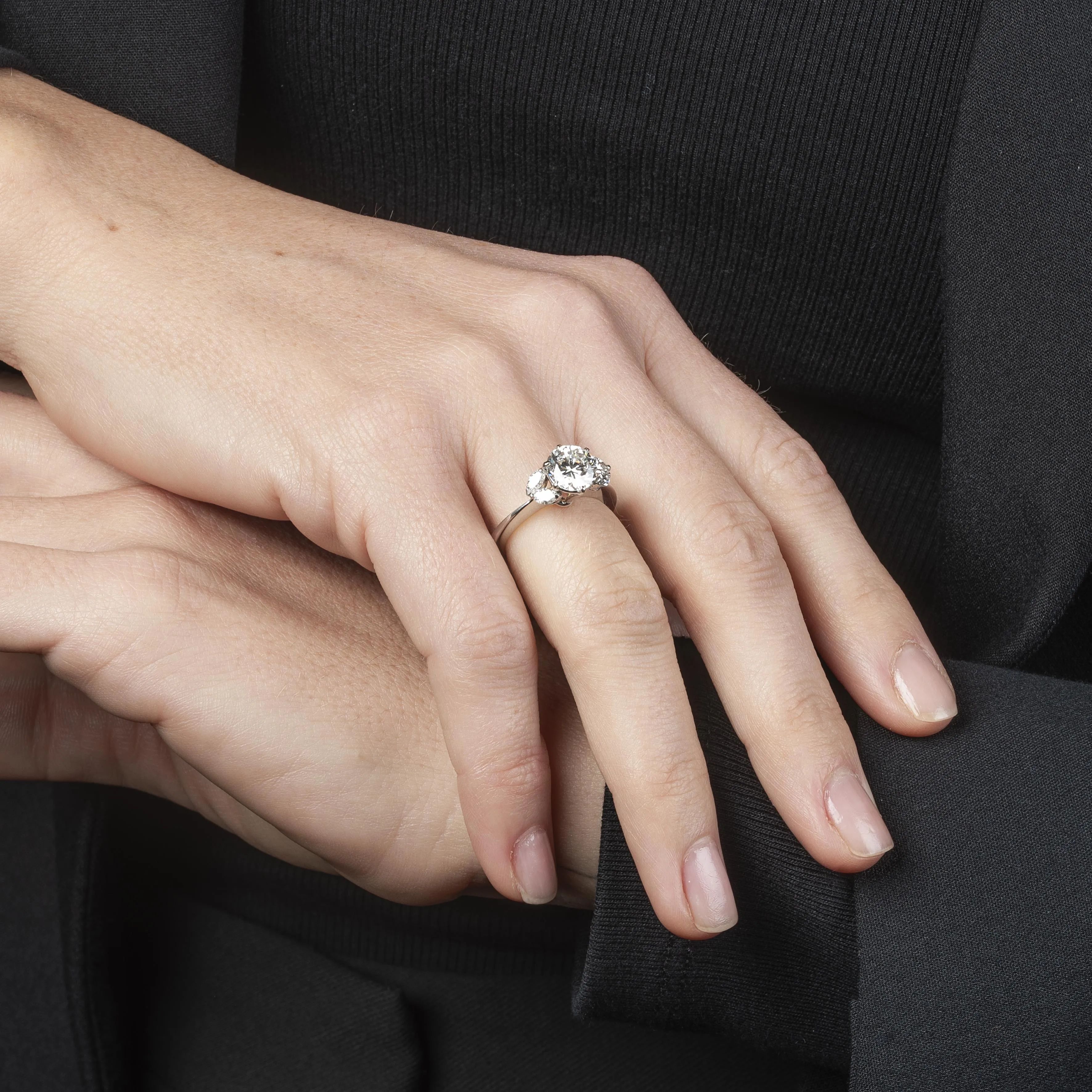 in oro bianco 18kt, al centro un diamante taglio brillante di ct.1.72, colore G, purezza Vs1, affiancato da diamanti taglio navette per ct.0.40 circa, punzoni 750 e del fabbricante, mis. 11/51, gr. 4. Corredato di certificato IGN del 23/10/2025 attestante le caratteristiche.