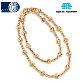 in oro giallo 18kt, composta da una serie di maglie circolari concatenate, firmata Bulgari, punzoni 750 e del fabbricante, lungh. cm 72, gr. 85