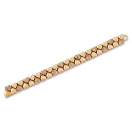 in oro giallo 18kt, composto da due file di cuori, con pavè di diamanti per ct. 2.10 circa, firmato Cartier, punzone 750 e del fabbricante, lungh. cm 18, gr. 49. Corredato di scatola.