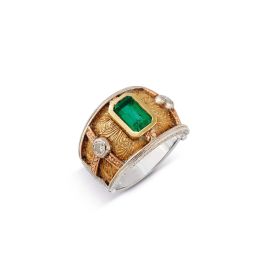 CAZZANIGA EMERALD AND DIAMOND RING IN 18KT TWO TONE GOLD