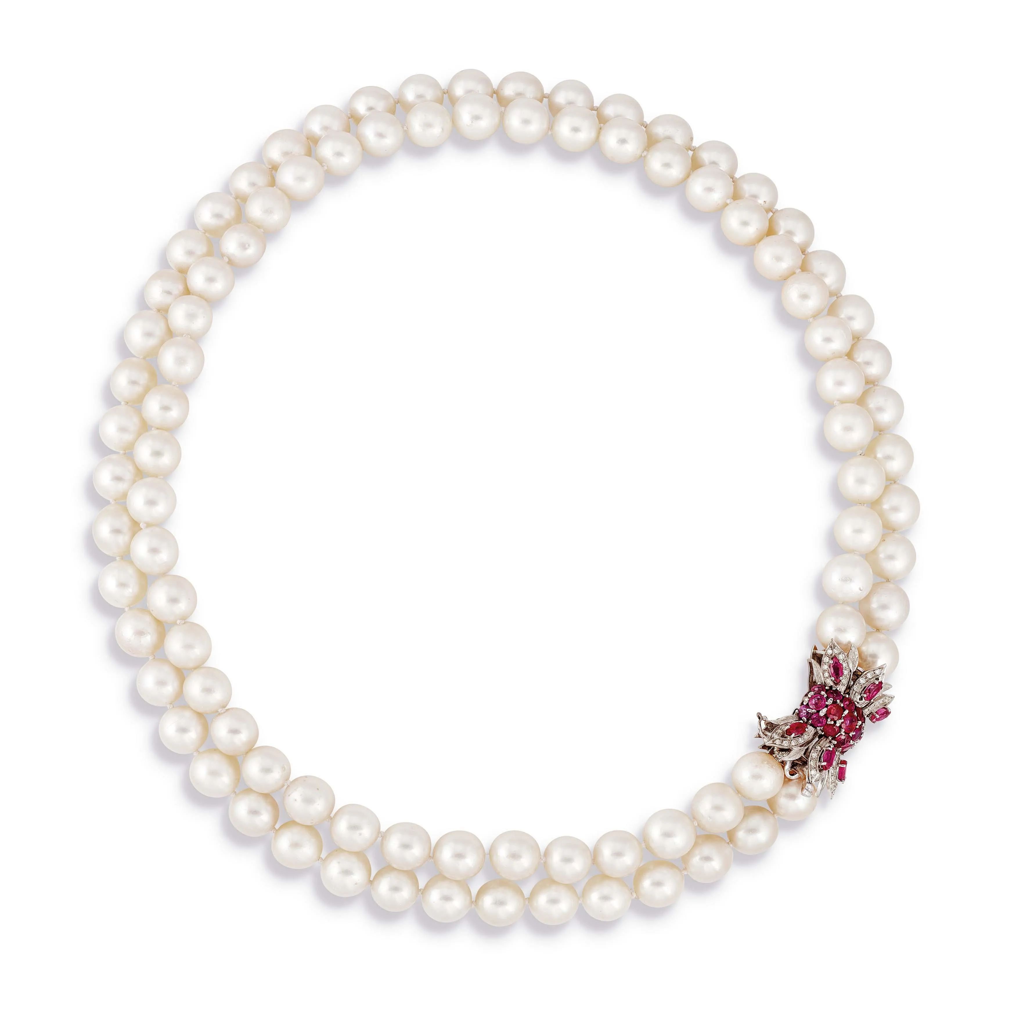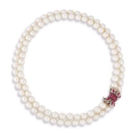 NECKLACE WITH PEARLS, RUBIES AND DIAMONDS