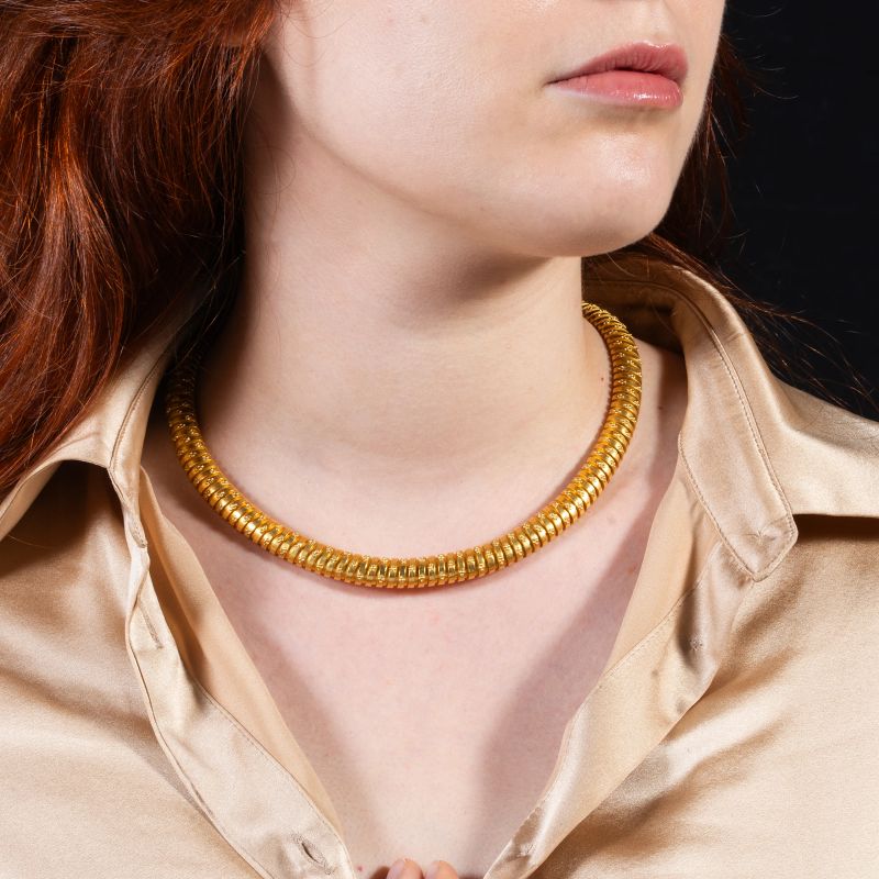 in oro giallo 18kt, con motivi di microgranulazione, lungh. cm 44, gr. 43.
