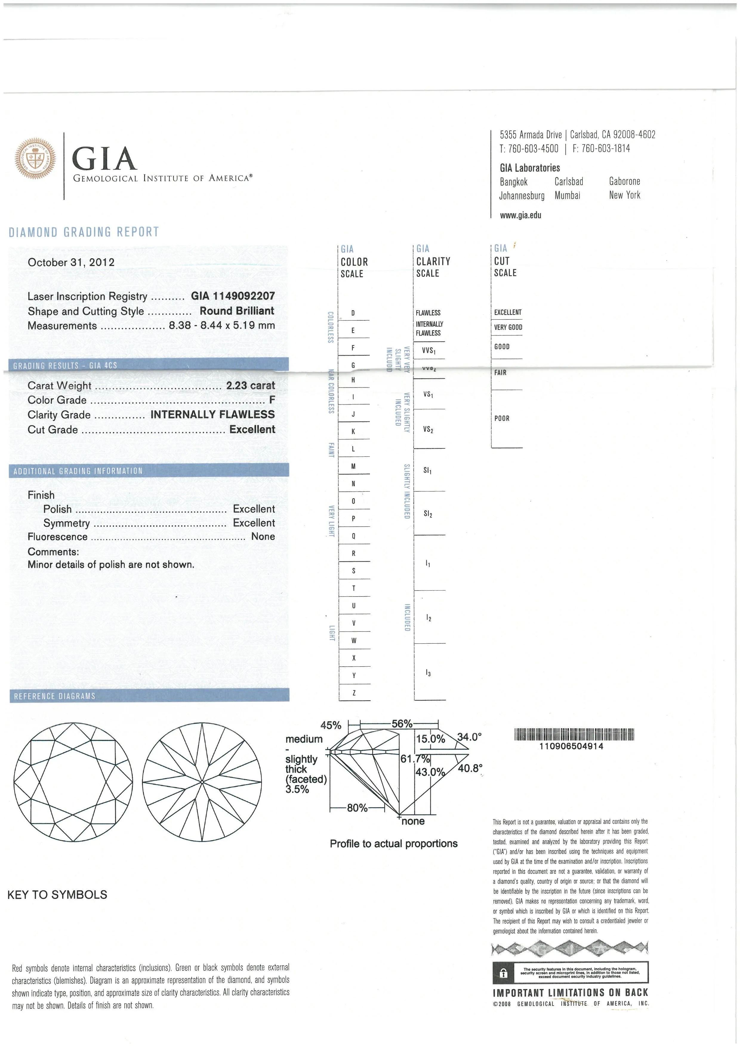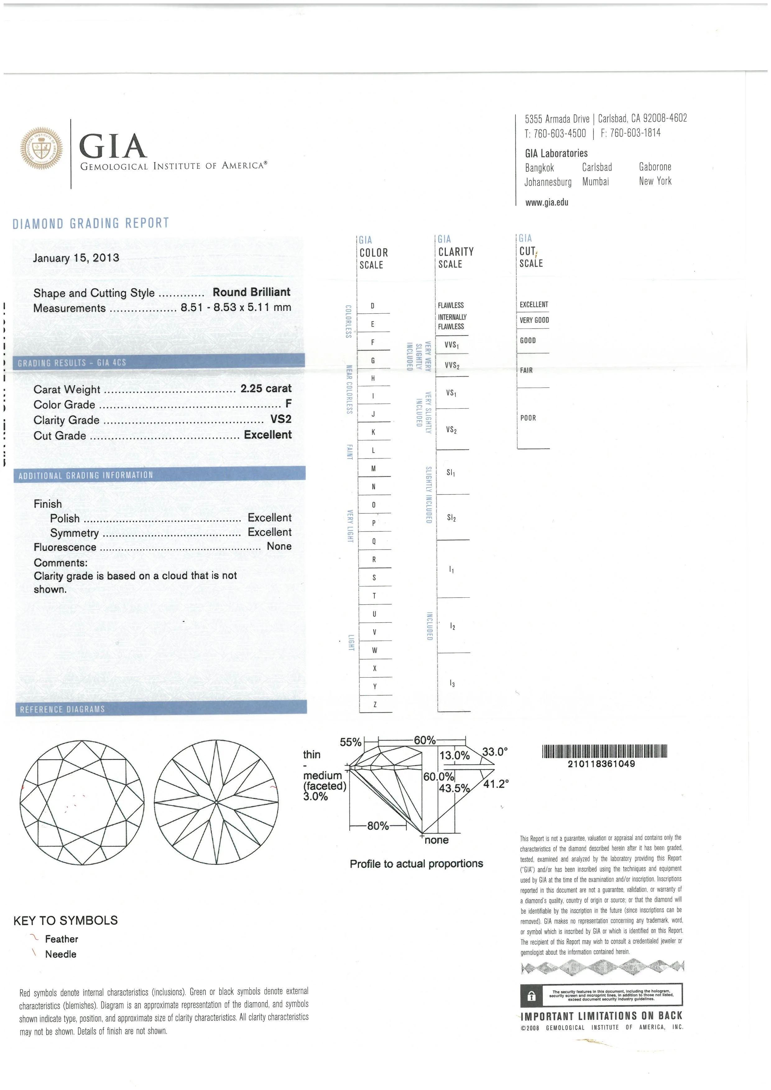 uno di ct. 2.25, colore F, purezza Vs2, e uno di ct. 2.23, colore F, purezza IF. Corredati di certificati GIA del 15/1/2013 e del 31/10/2012 attestanti le caratteristiche