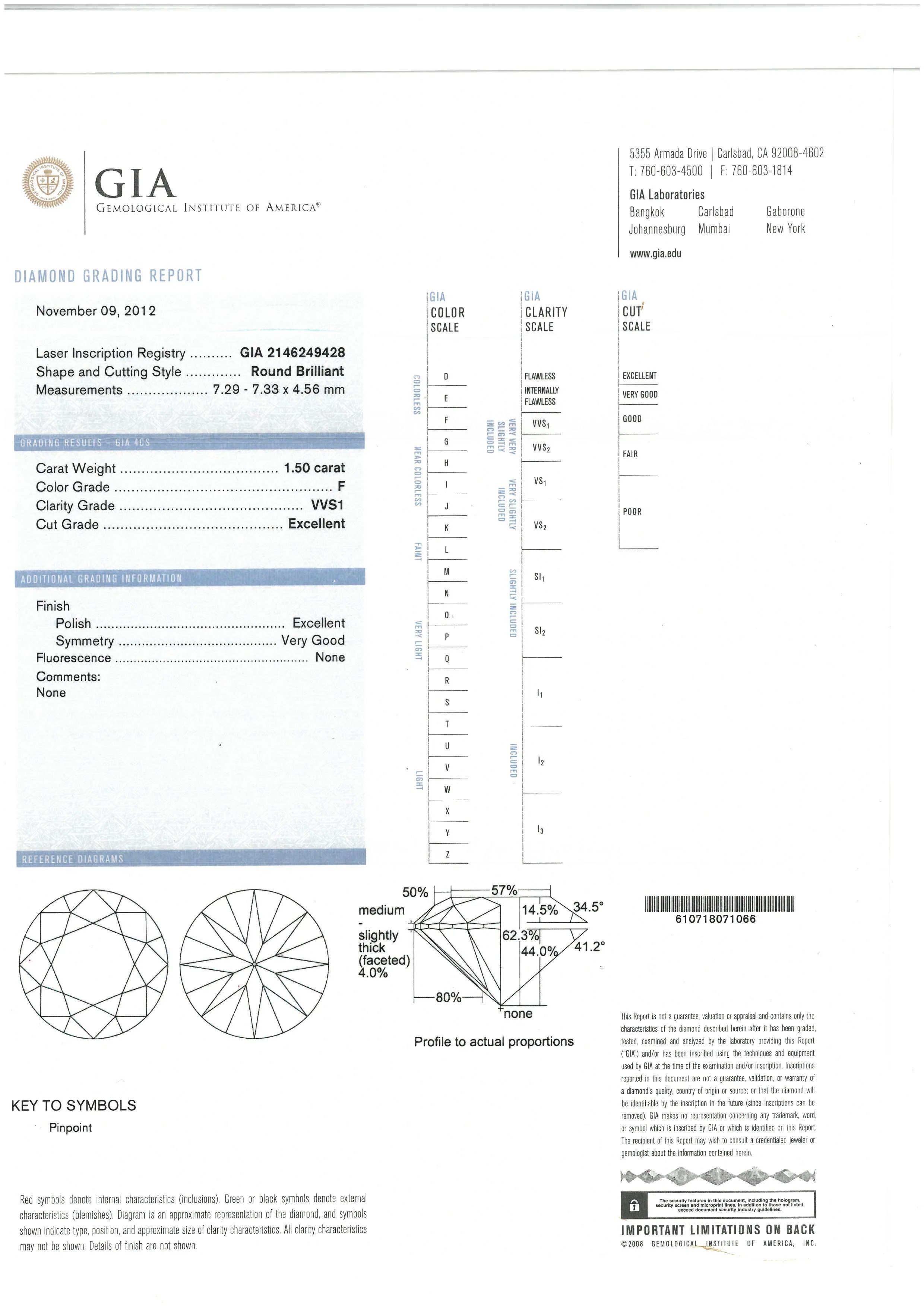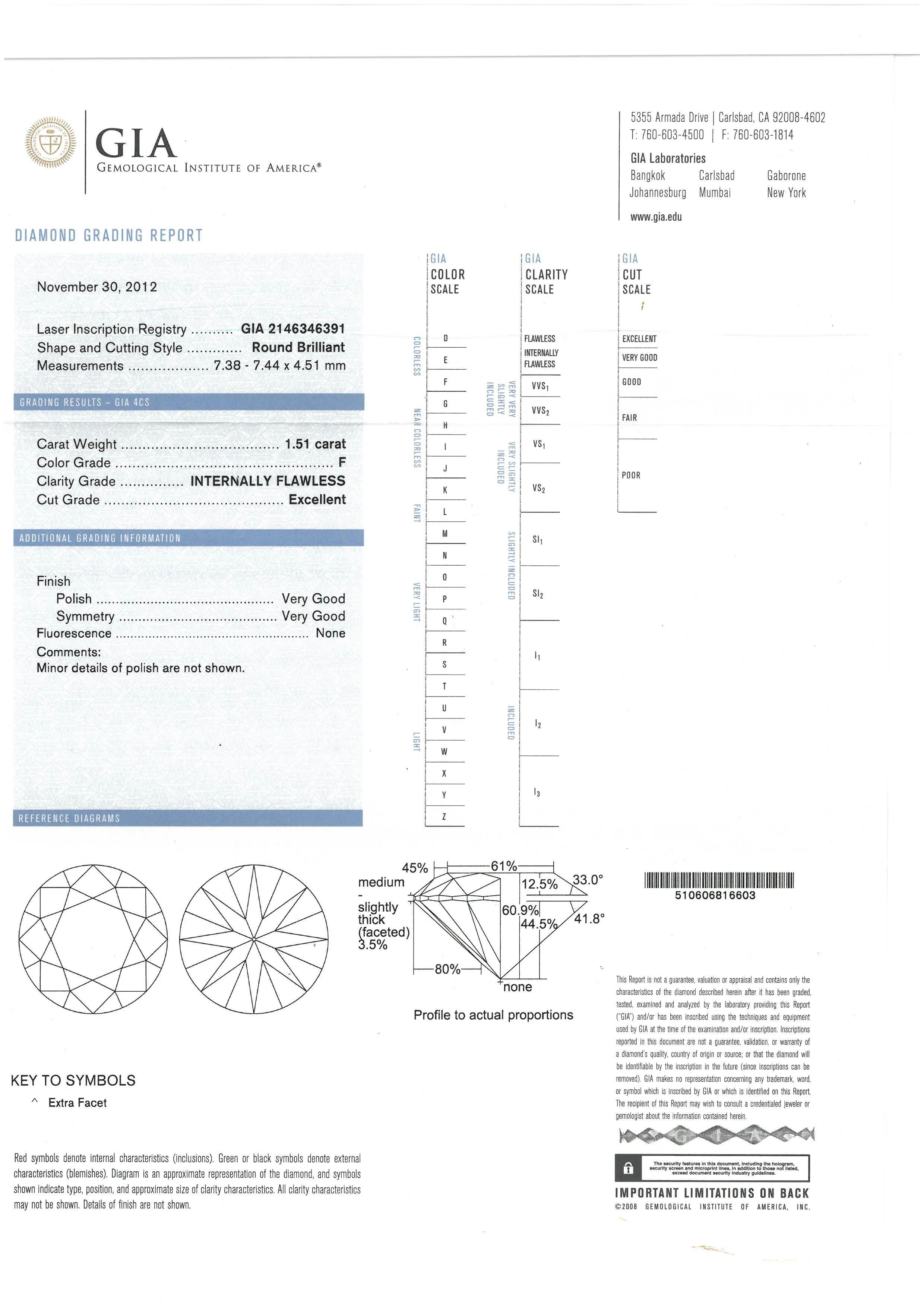 uno di ct. 1.50, colore F, purezza Vvs1, e uno di ct. 1.51, colore F, purezza IF. Corredati di certificati GIA del 9/11/2012 e del 30/11/2012 attestante le caratteristiche
