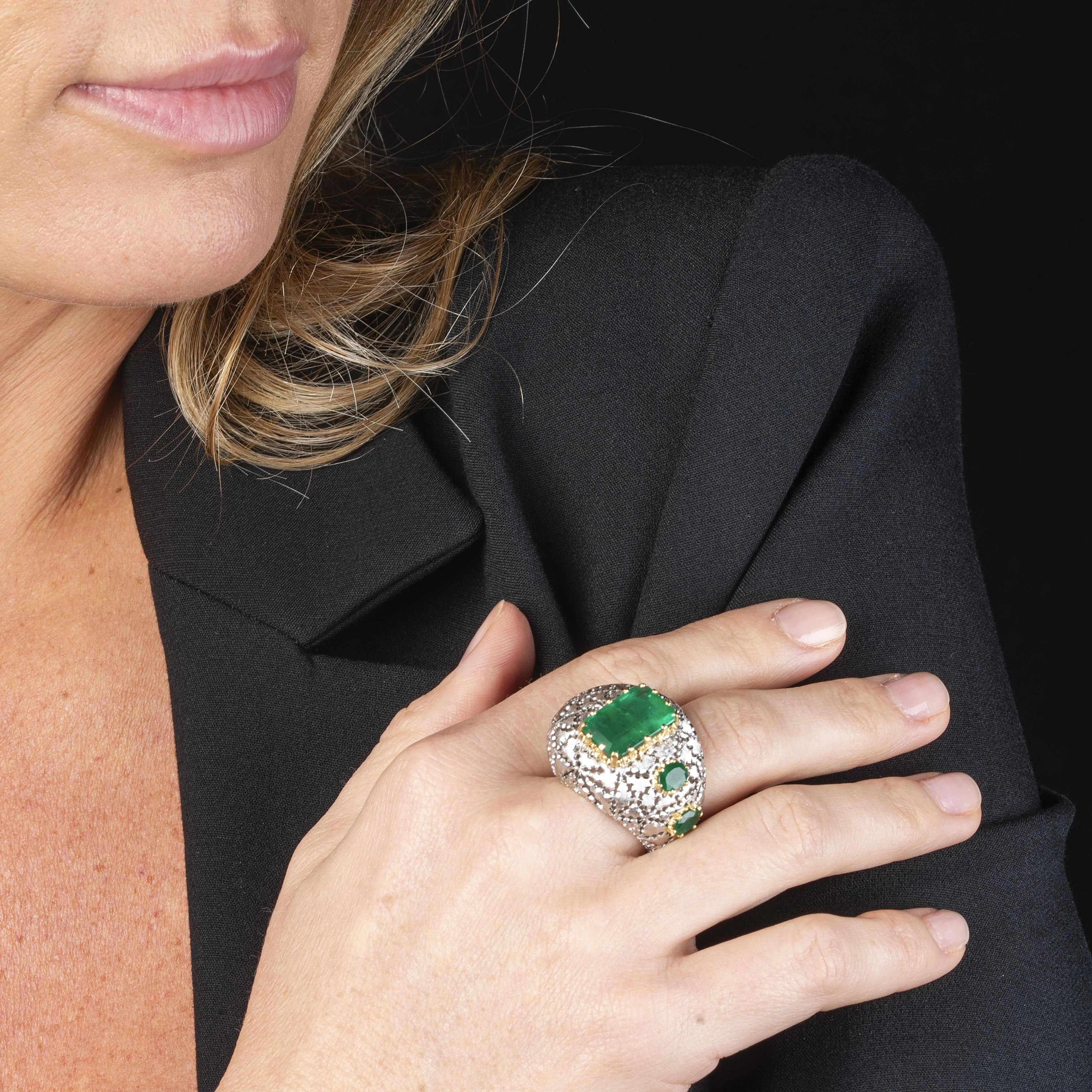 GRANDE ANELLO IN ORO BIANCO CON SMERALDI