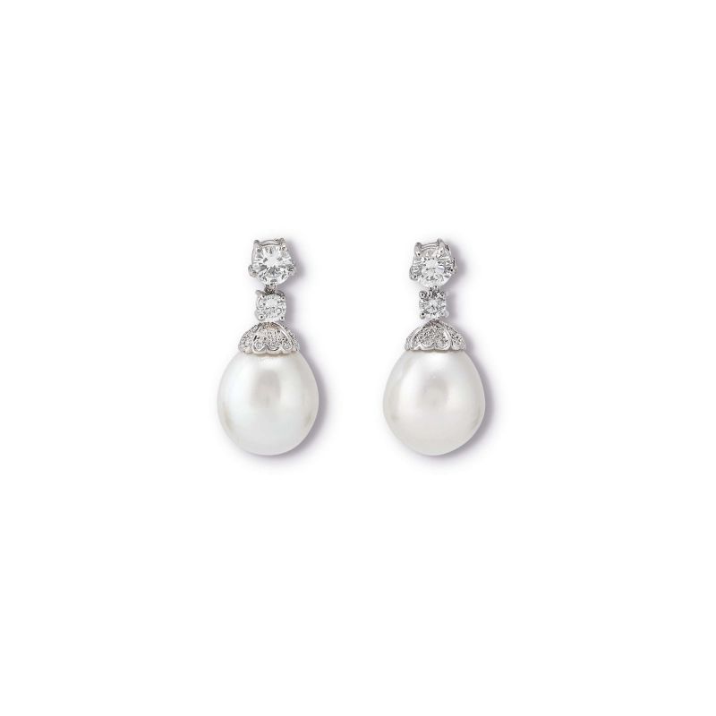 PAIO DI ORECCHINI CON PERLE E DIAMANTI