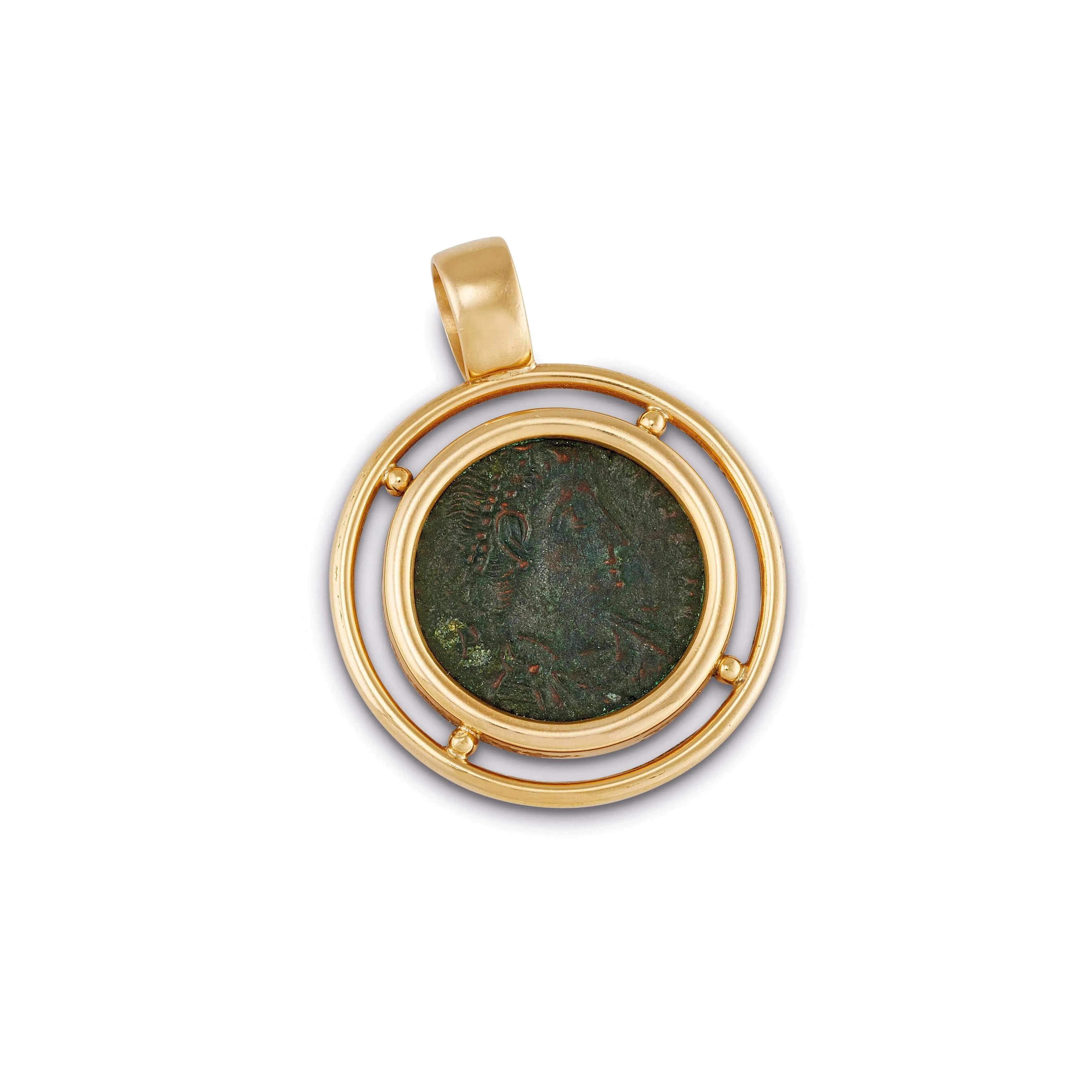 in oro giallo 18kt, al centro una moneta antica, dim, cm 4x3.1, gr. 15