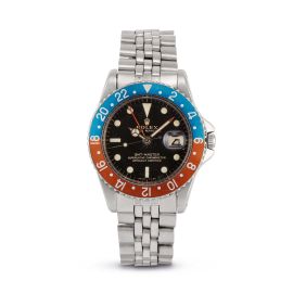 RARE ROLEX GMT MASTER F.A.P. REF. 1675 N. 10061XX STAINLESS STEEL WRISTWATCH, 1964