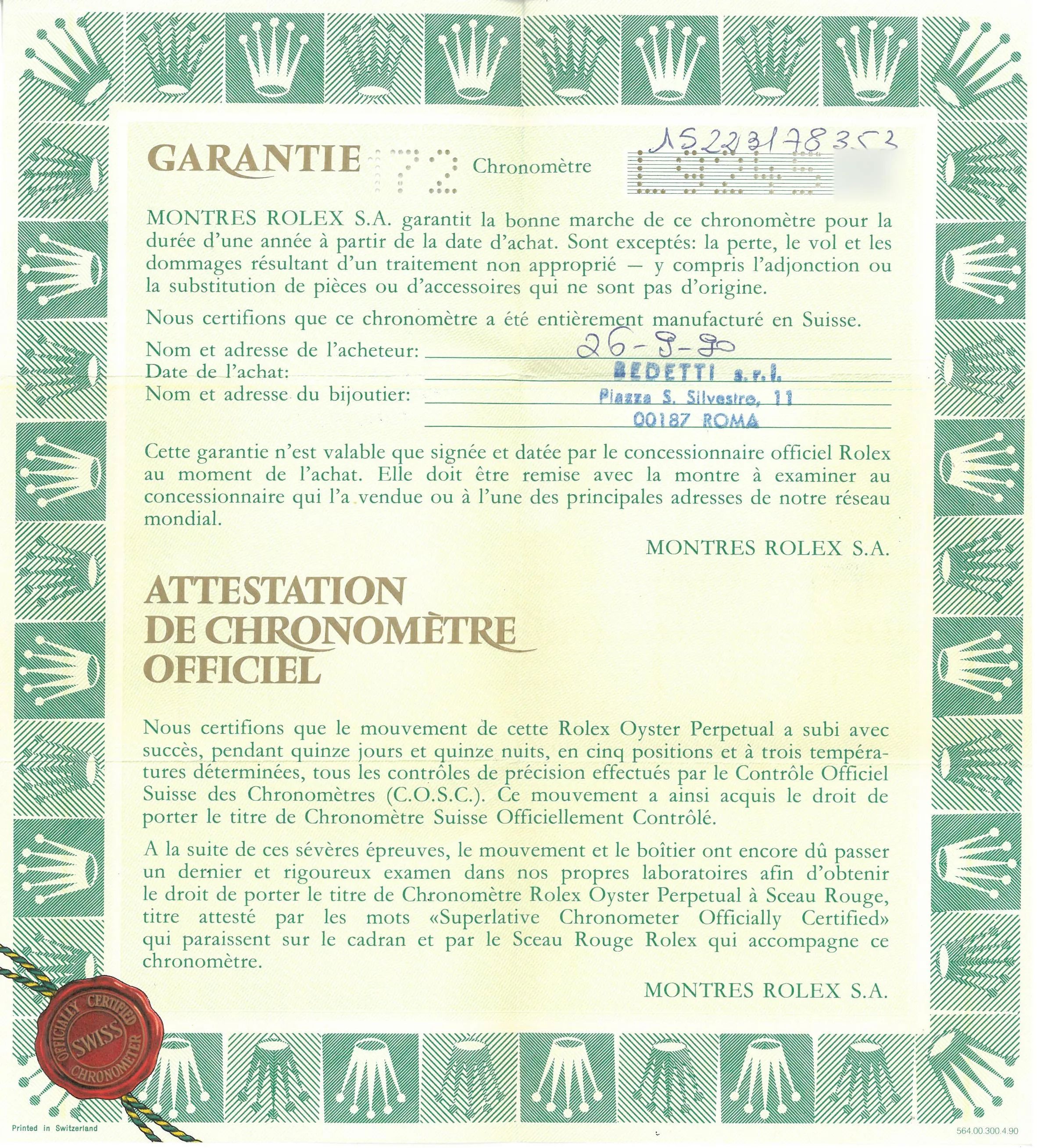 ROLEX DATE REF. 15223 ACCIAIO E ORO N. L9245XX ANNO 1990