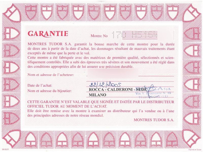 cassa in acciaio, fondello serrato a vite, corona marcata, ghiera zigrinata, quadrante nero, grafica argento, indici e numeri arabi applicati, datario a ore tre con lente cyclope, finestra del giorno della settimana a ore dodici in italiano, movimento a carica automatica cal ETA 2834-2, bracciale a maglie in acciaio, lungh. interna cm 17 circa, chiusura a scatoletta marcata Tudor, vetro minerale. Diam. mm 35. Corredato di scatola e garanzia.