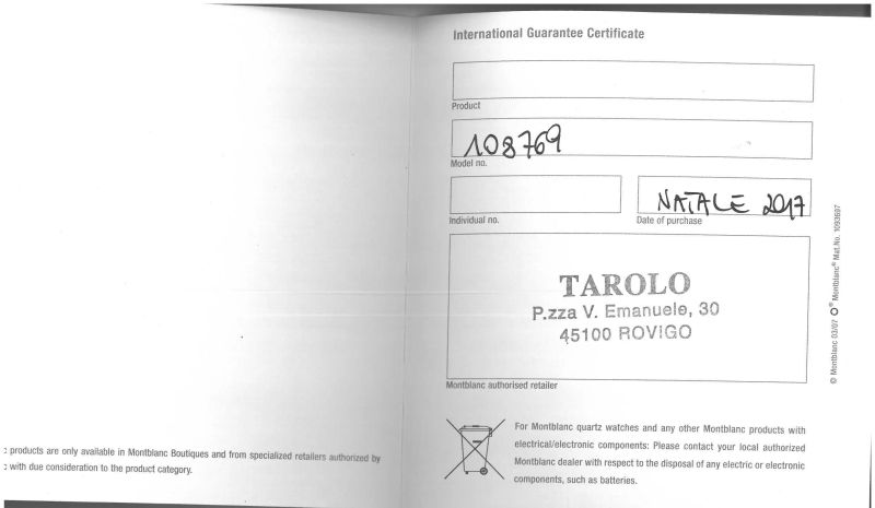 MONTBLANC OROLOGIO REF. 7239 ANNO 2017