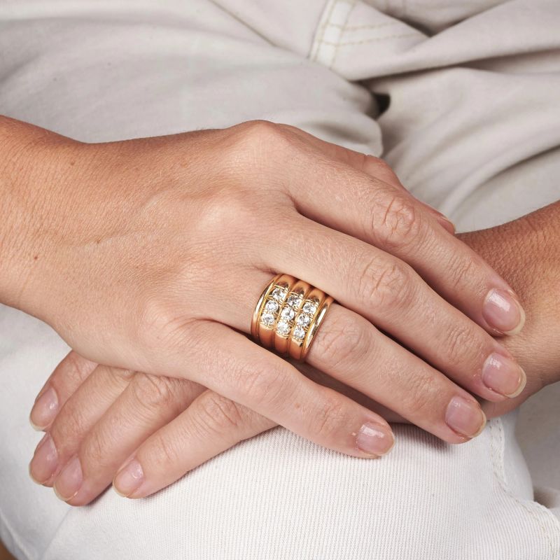 BAND RING WITH OLD MINE CUT DIAMONDS IN 18KT ROSE GOLD