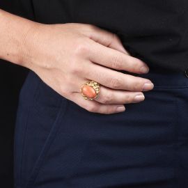 CORAL RING IN YELLOW GOLD