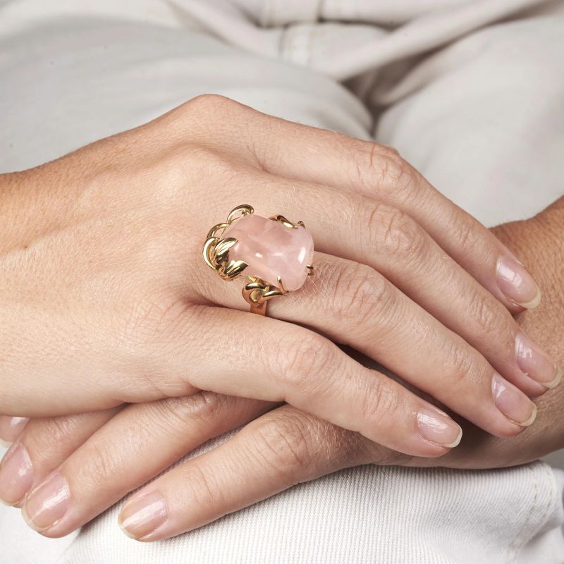 PINK QUARTZ RING IN 18KT YELLOW GOLD