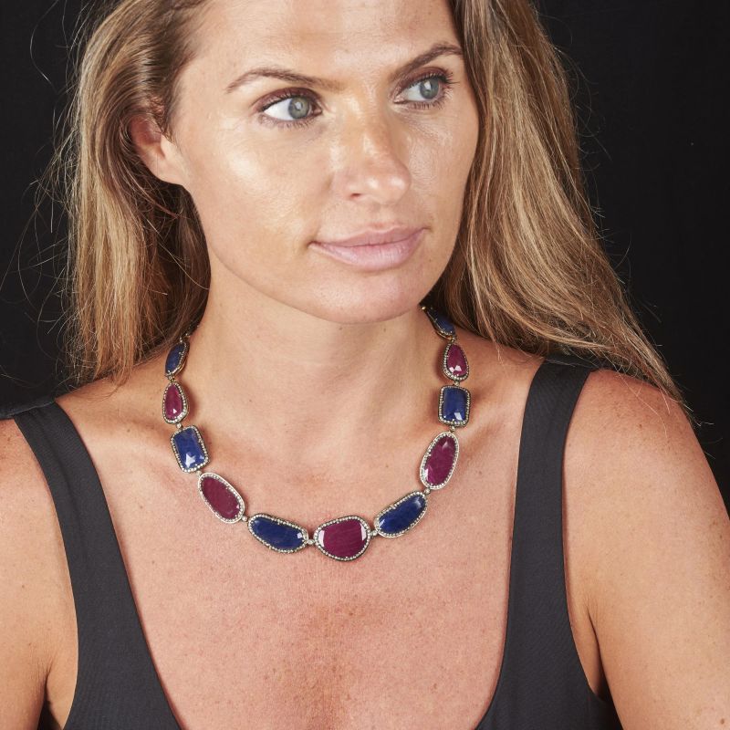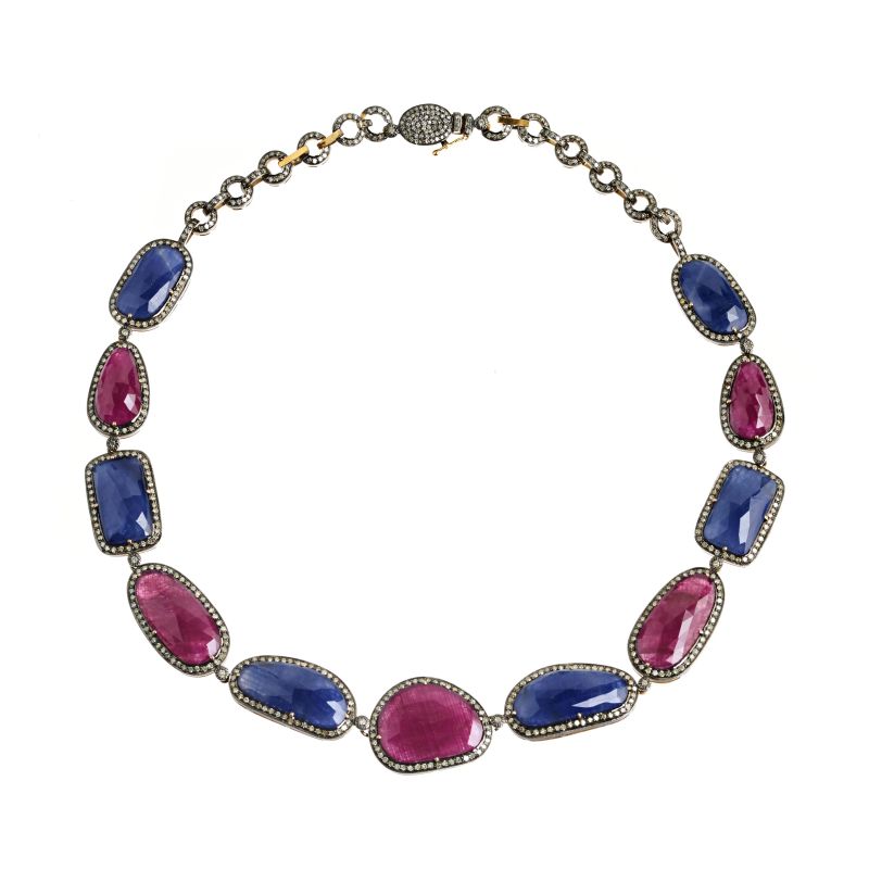 COLLANA CON PIETRE DI COLORE E DIAMANTI
