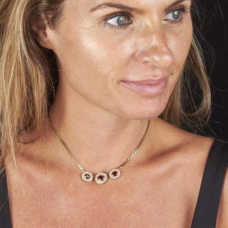 RUBY AND DIAMOND NECKLACE IN 18 KT YELLOW GOLD