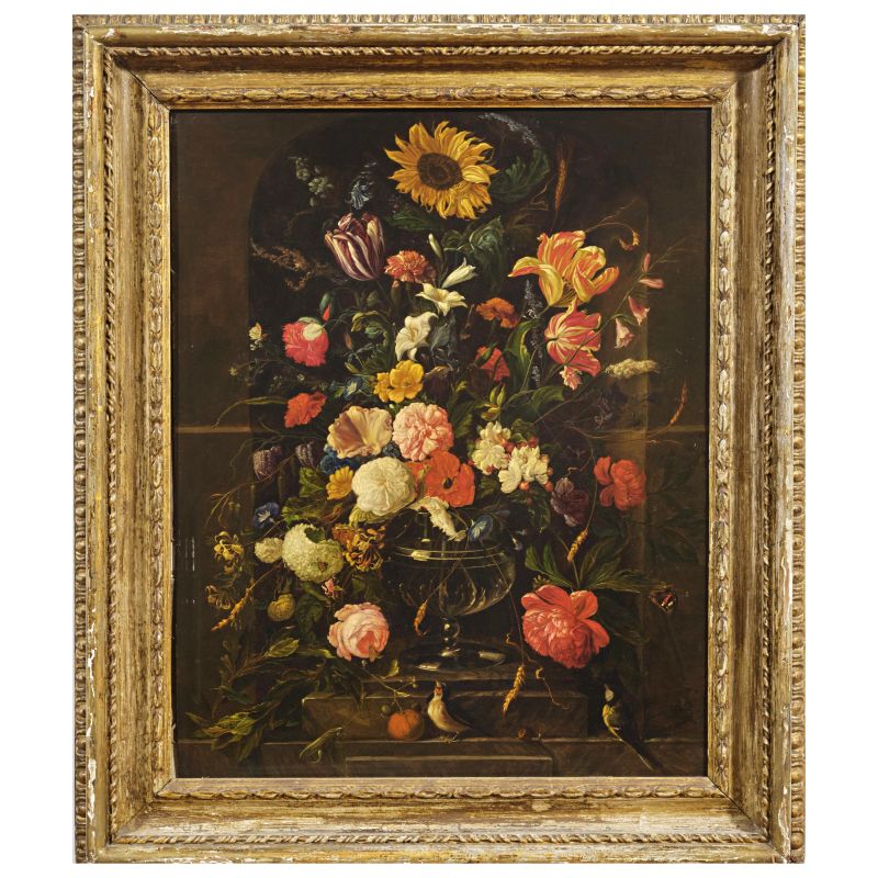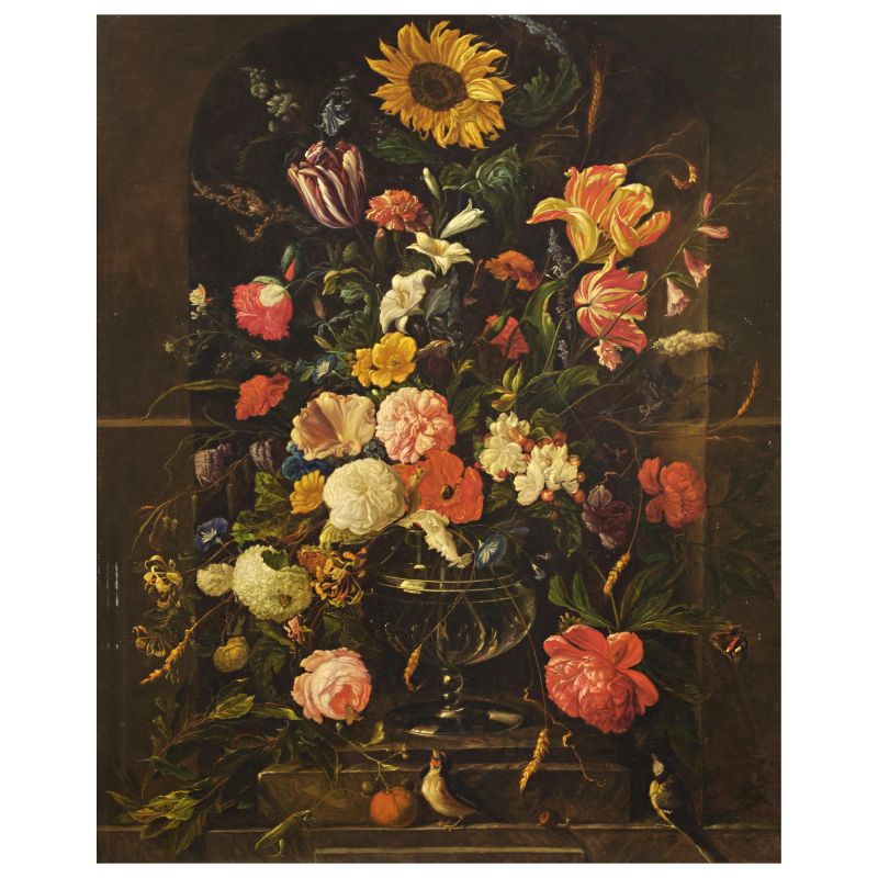 STILL LIFE WITH A VASE OF FLOWERS AND ANIMALS