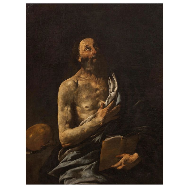 Il dipinto qui presentato è stato ricondotto da uno studio di Stefano Causa al Maestro di Fontanarosa, alias Giuseppe di Guido, un pittore tra i maggior esponenti del caravaggismo napoletano, a metà strada tra Battistello Caracciolo e Ribera. "In un ambiente indeterminato illuminato da sinistra e accompagnato da un teschio in tralice (cavato di peso da Battistello) San Gerolamo è un campione del lessico di un maestro entrato dalla porta grande degli studi da oltre trent'anni. Si cominciò a parlare di lui, con cauto avviamento filologico, nel catalogo di una delle esposizioni cruciali degli ultimi decenni (Battistello Caracciolo e il primo naturalismo a Napoli). [...] Potente e impressivo il San Gerolamo è opera di qualcuno che costeggiasse Battistello e che, a un certo punto, acquistasse consapevolezza dello scatto, in senso stilistico, impresso dal Ribera alla scena locale. Il nostro dipinto si pone a metà strada tra i due e, insieme, riapre il dossier su un corpus di livello alto e costante, prospettandone un arricchimento significativo. Tutto fa credere che la tela vada collocata negli inoltrati anni 1620".