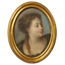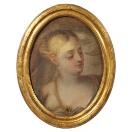 coppia di dipinti, olio su tela ovale, cm 38,5x29