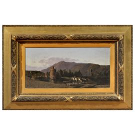 LANDSCAPE VIEW WITH RUINS AND HORSES