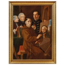 La tela qui presentata, firmata e datata, mostra l'autoritratto del frate pittore accompagnato da altre figure virili. È possibile che il ritratto all'interno dell’opera sia quello del padre Giovanni Conca, anch'egli pittore, e il personaggio subito alle spalle, che tiene la mano sinistra appoggiata alla tela, sia il più noto e famoso Sebastiano Conca, cugino del padre.