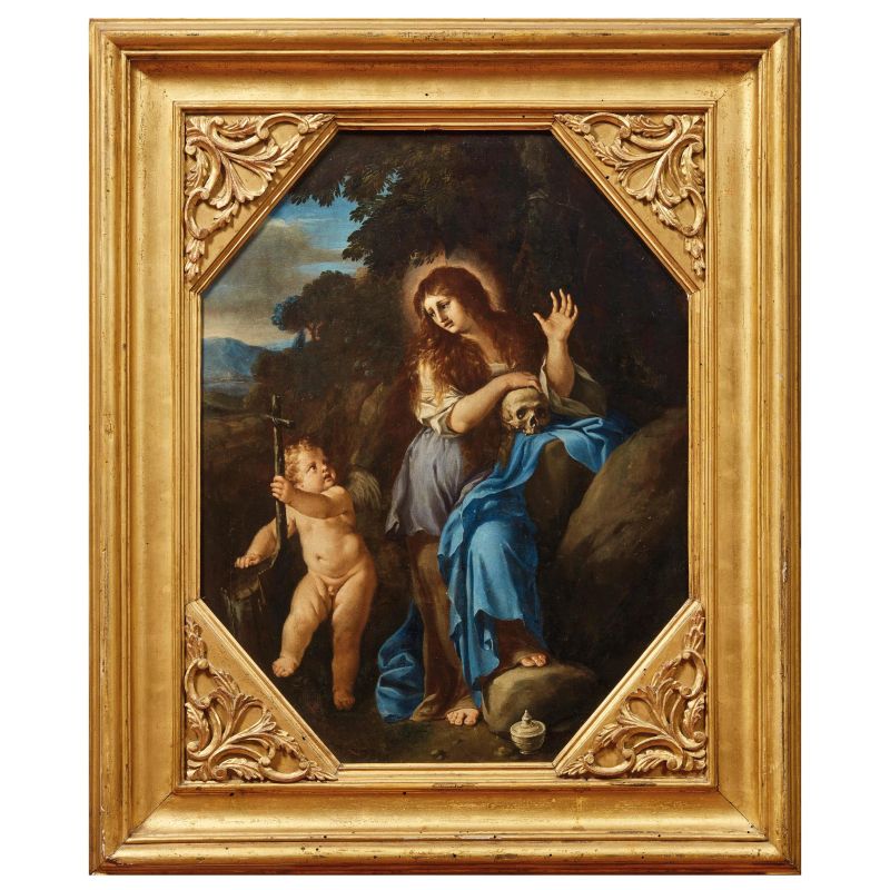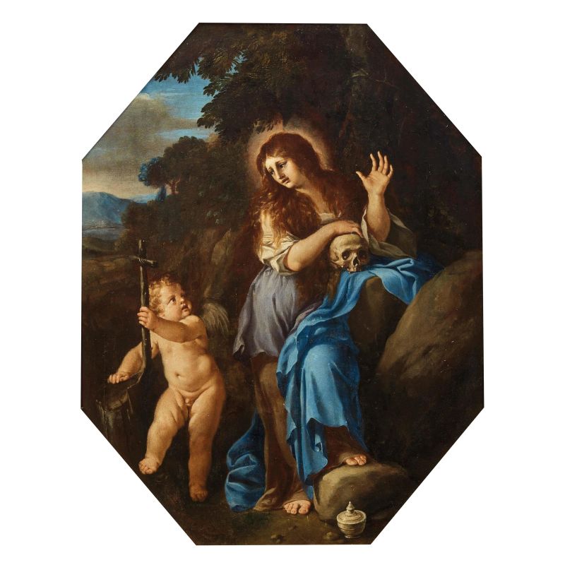 La dolce pennellata che disegna l'elegante e raffinato panneggio blu della Maddalena permette di ricondurre l'opera alla mano del bolognese Lucio Massari (1569-1633). Il pittore si è formato nei tardi anni del Cinquecento a contatto con Bartolomeo Passerotti e Bartolomeo Cesi per poi confrontarsi con Annibale Carracci e, più in generale, l'Accademia degli Incamminati. Nei primi anni del Seicento fu collaboratore di Ludovico Carracci sui ponteggi della decorazione del chiostro di San Michele in Bosco a Bologna.