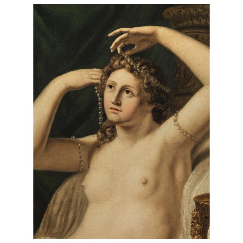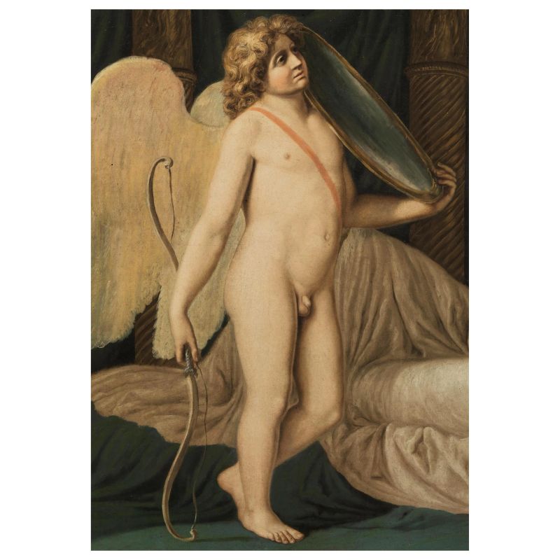Questa raffinata opera di Luigi Ademollo, interprete eccentrico del Neoclassicismo, raffigurante la Toletta di Venere faceva parte della decorazione di palazzo Sergardi a Siena e pertanto costituisce una testimonianza dell’attività del pittore nella città toscana. Tale provenienza consente di fissarne l’esecuzione agli anni 1794-1795, durante i quali Ademollo fu responsabile della decorazione del suddetto palazzo che, dietro la facciata neo-cinquecentesca disegnata nel 1763 dall’architetto Paolo Posi, fu rinnovato nelle sue sale principali su progetto dell’ormai celebre artista milanese.